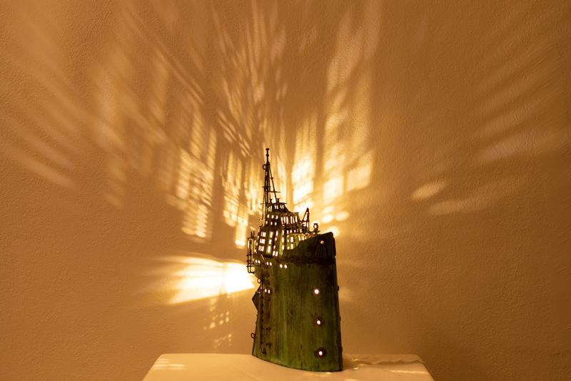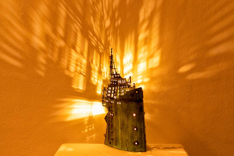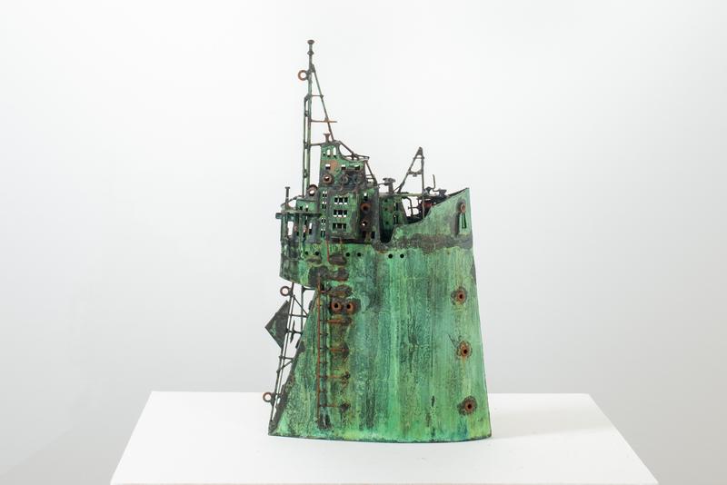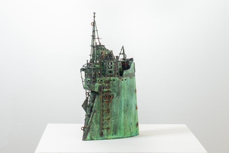 - Technique: Patinated brass and copper