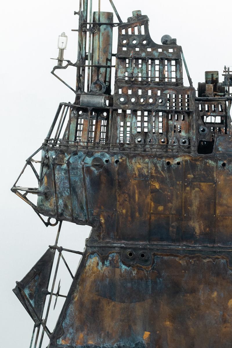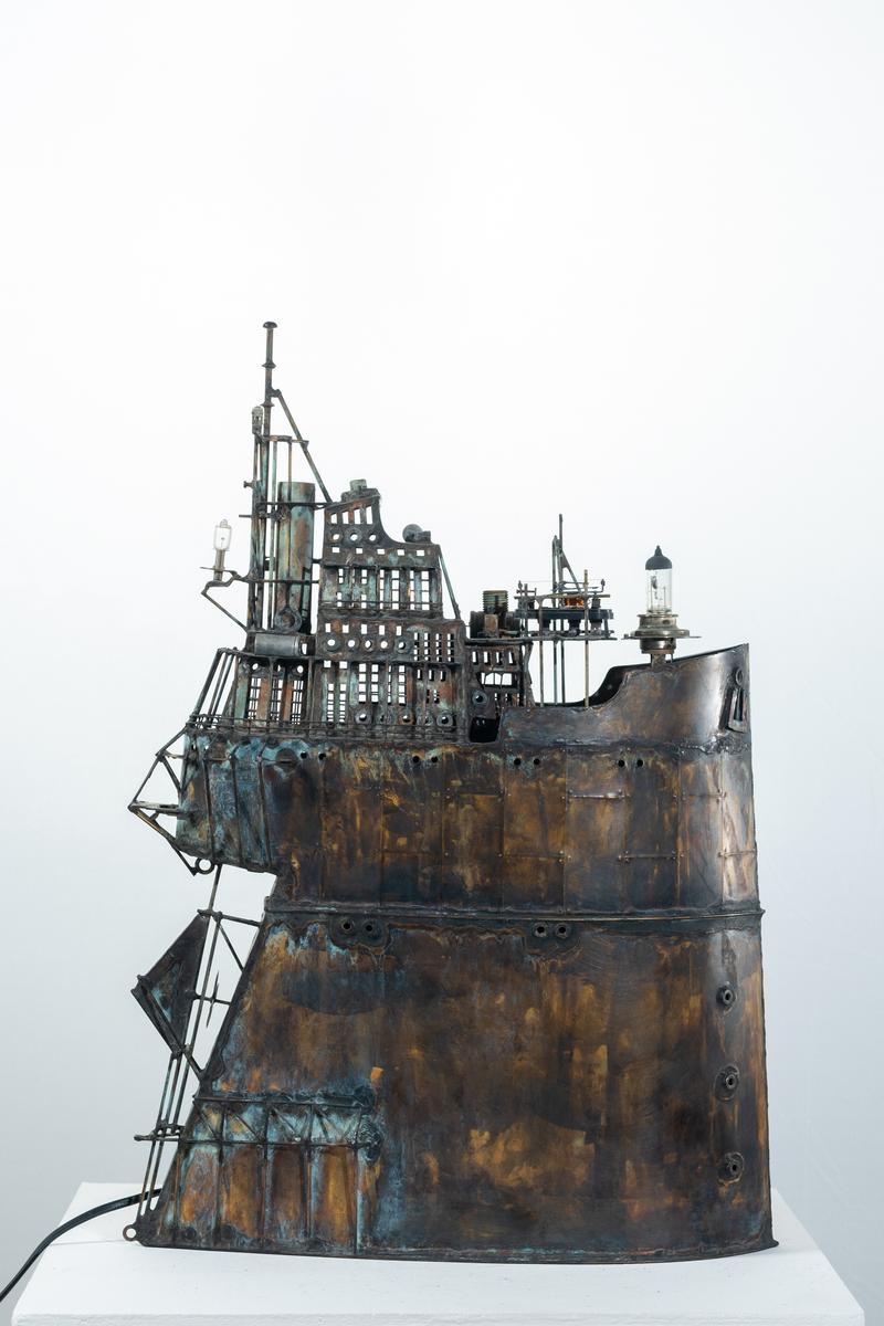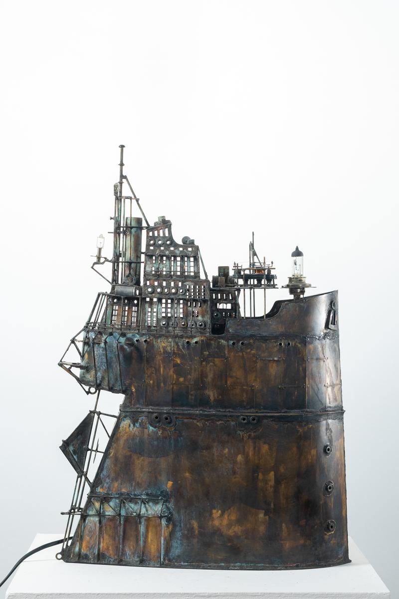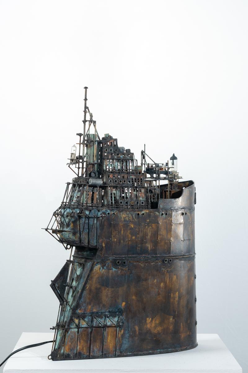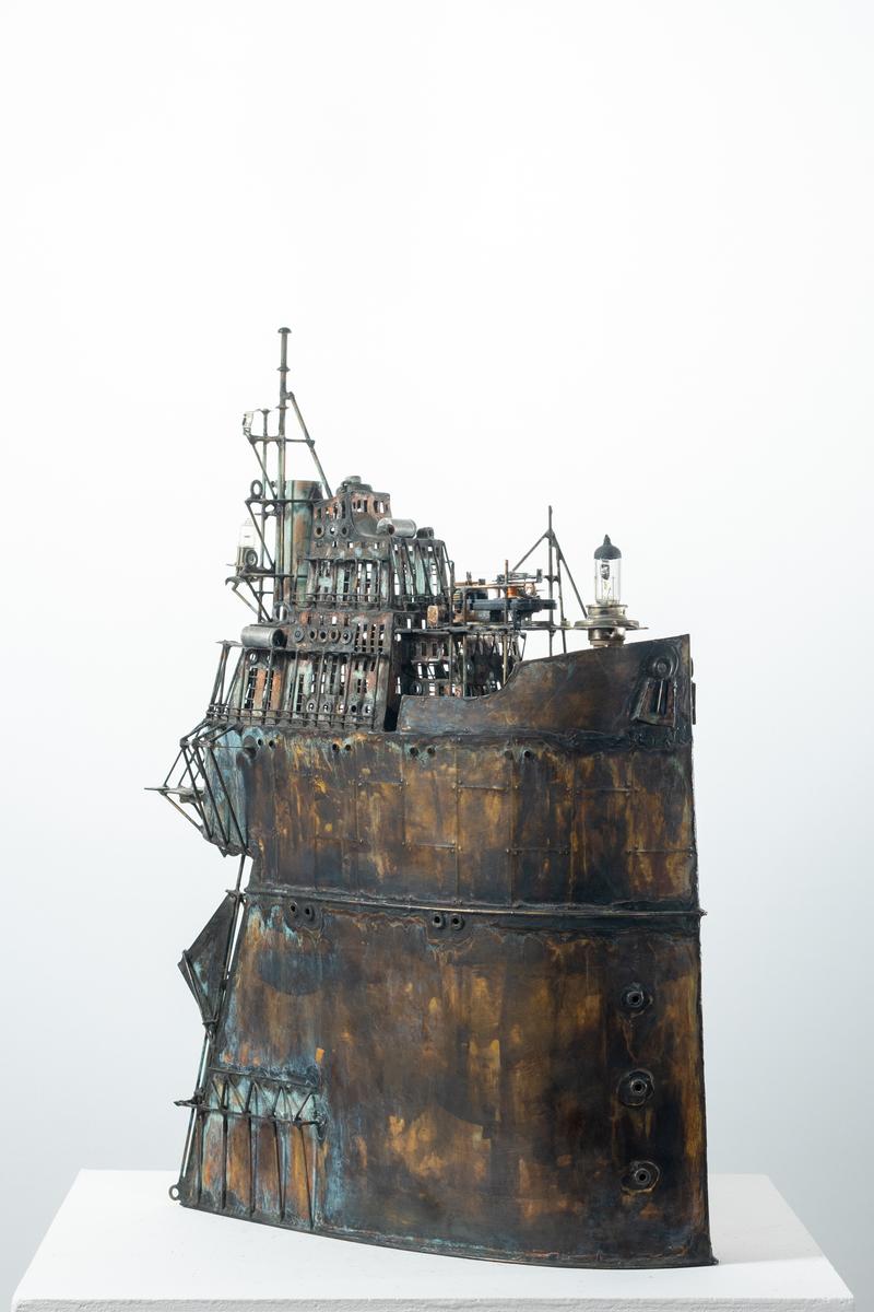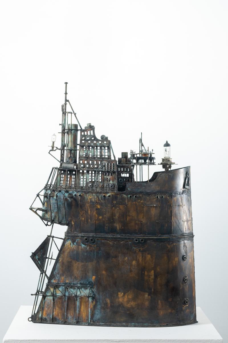 - Technique: Patinated brass and copper