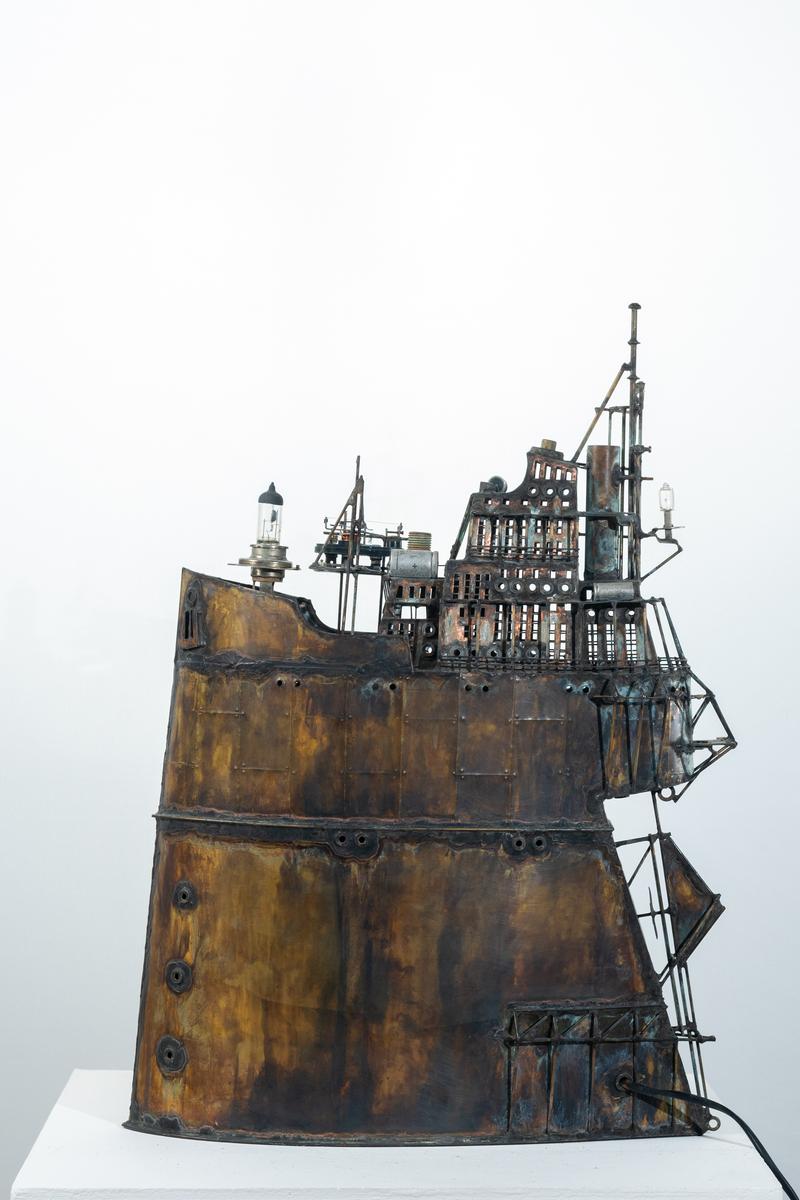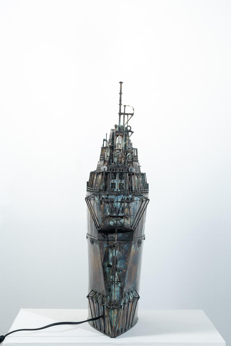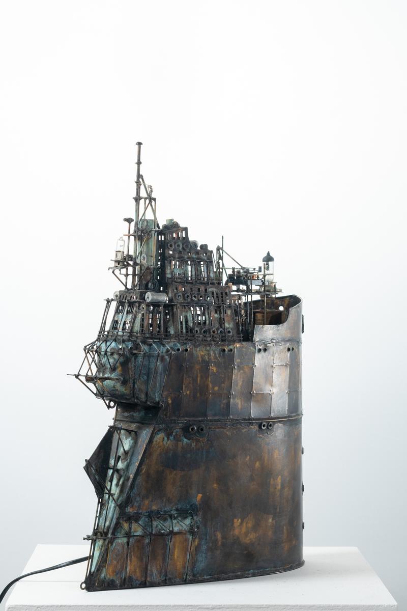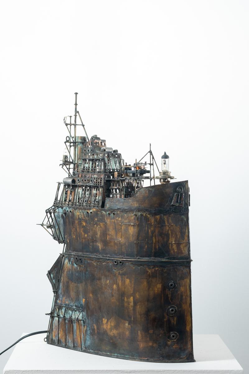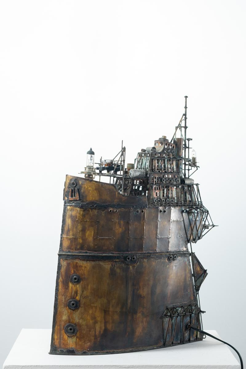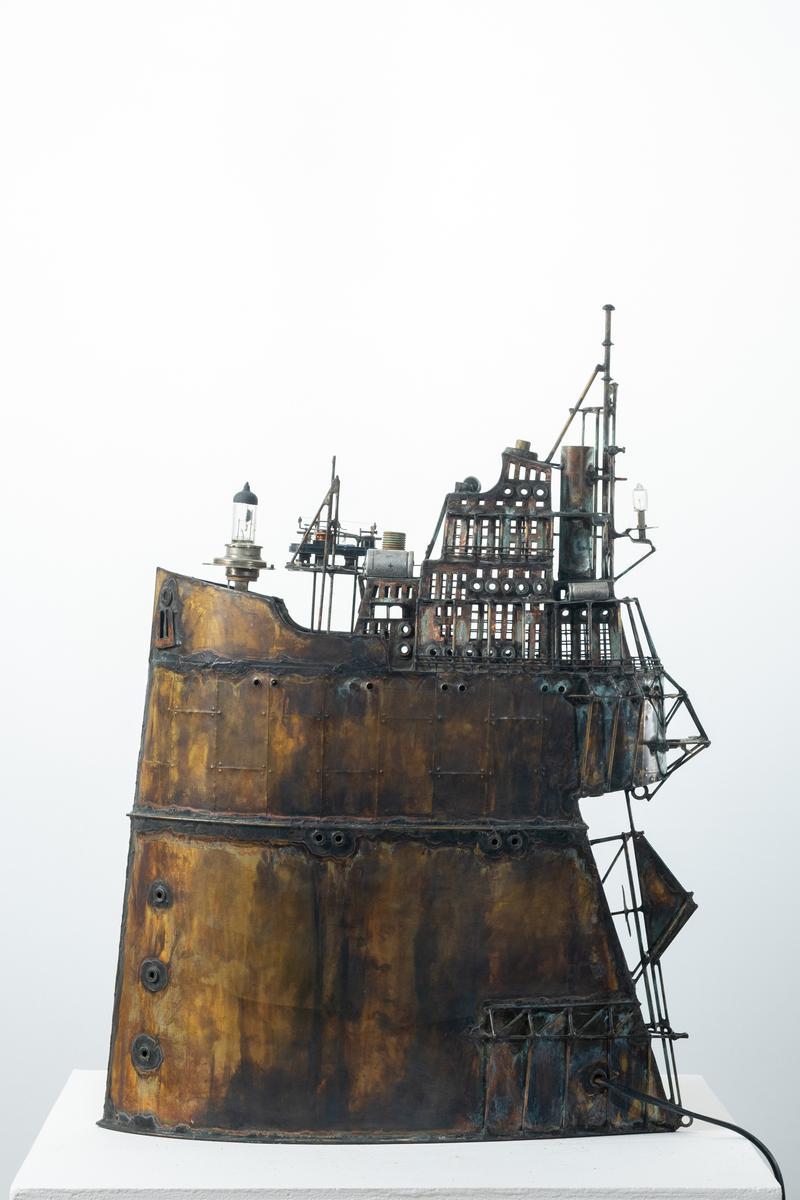 - Technique: Patinated brass and copper