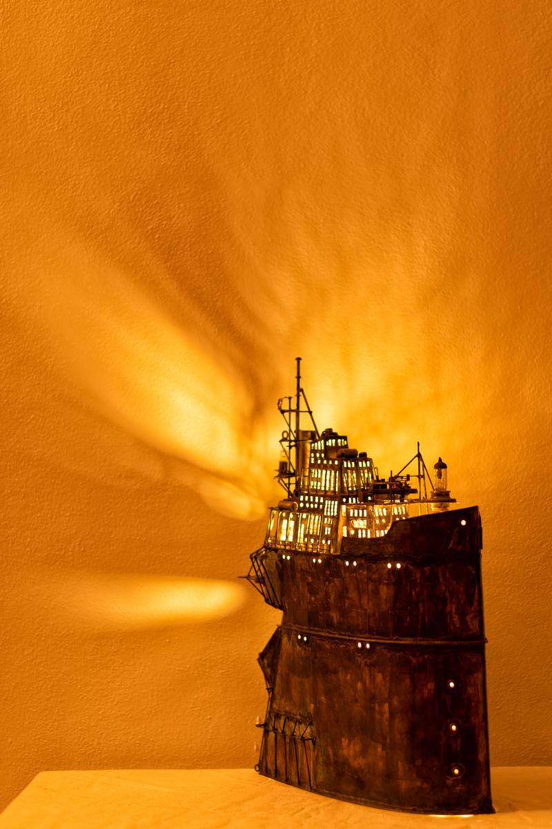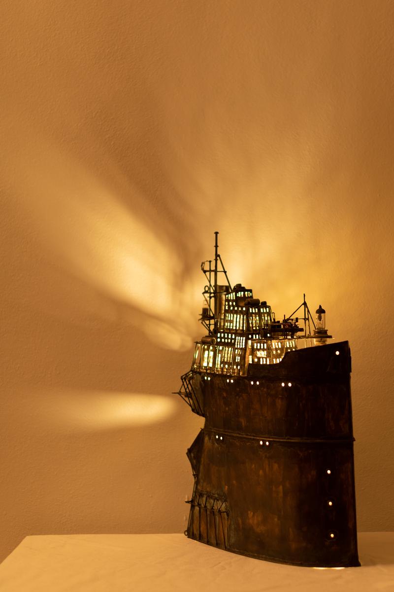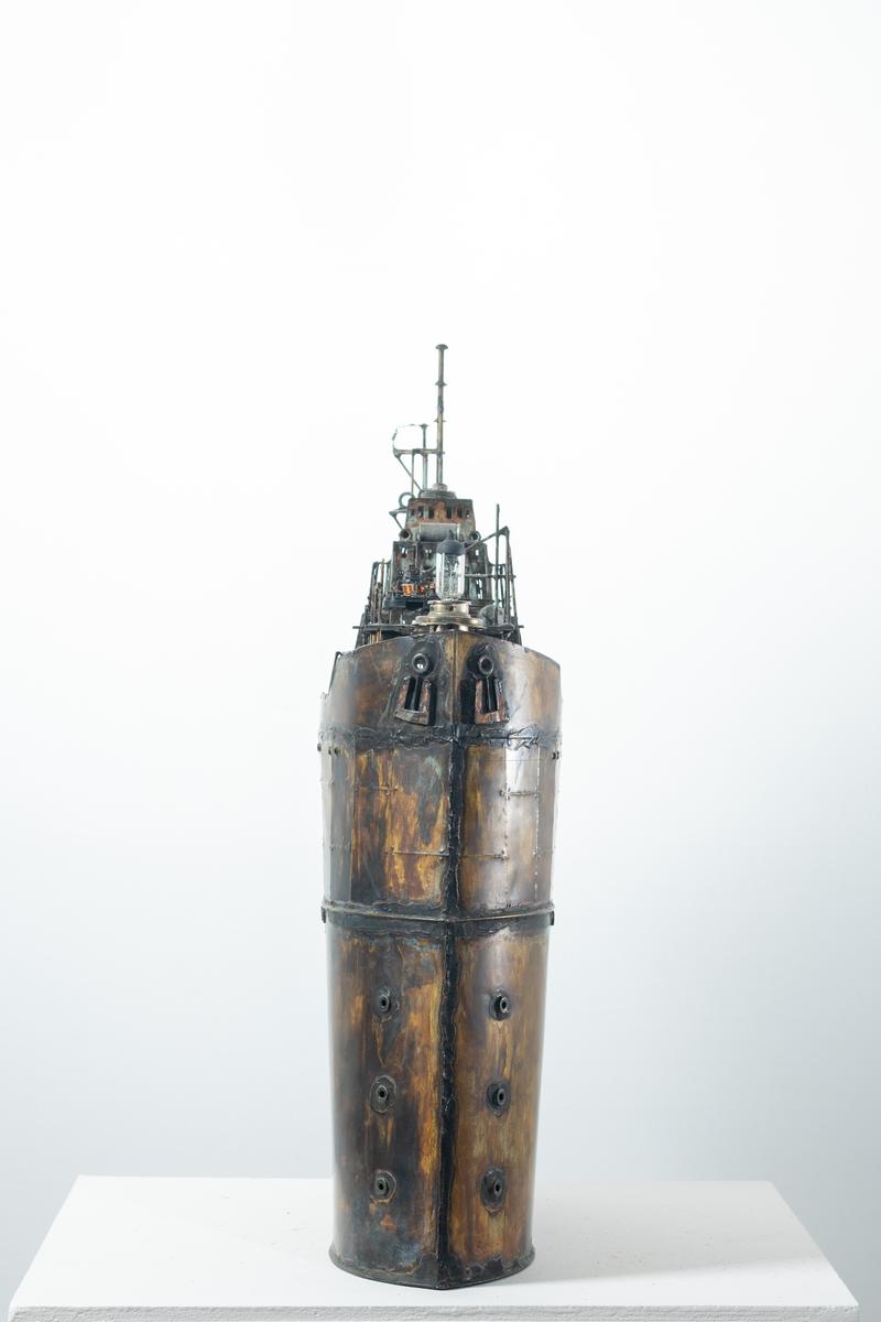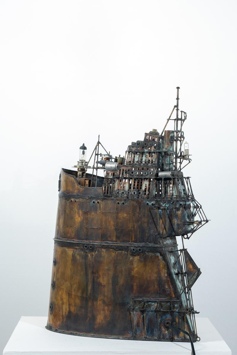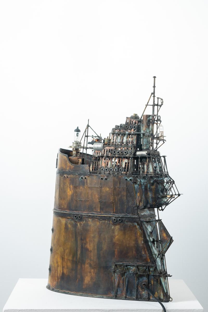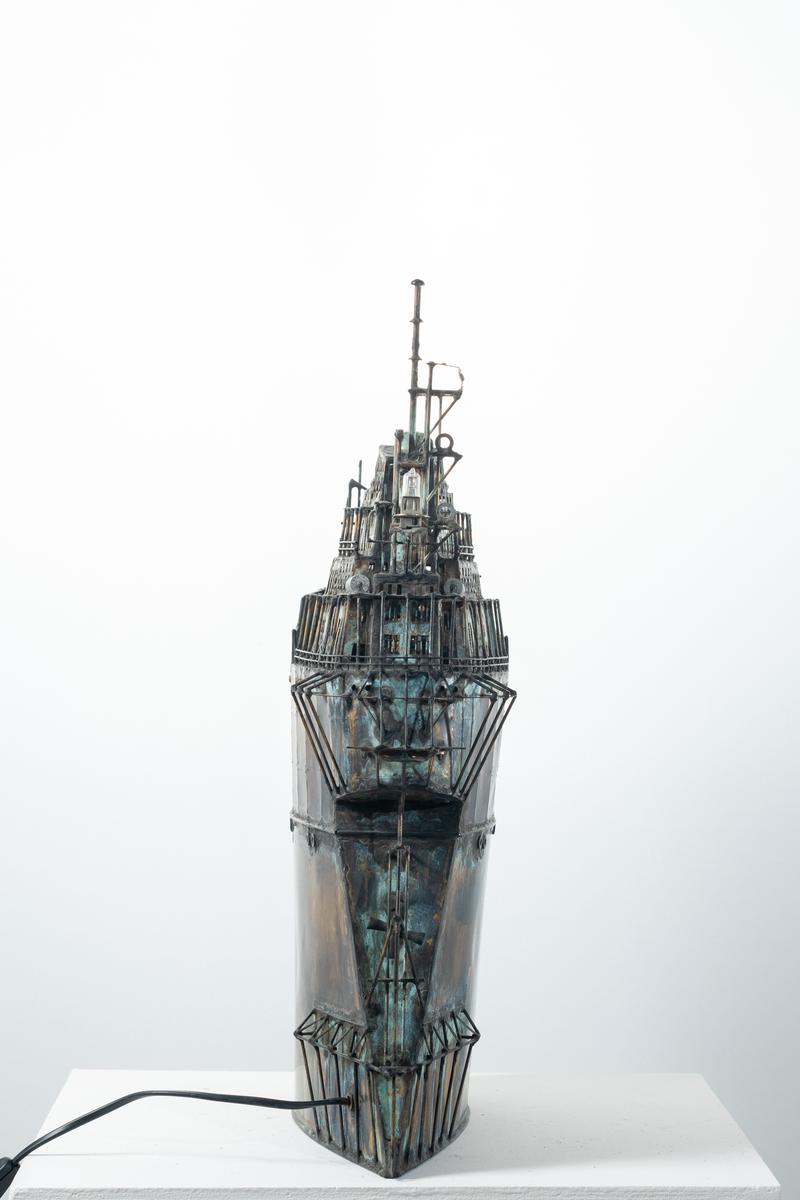 - Technique: Patinated brass and copper