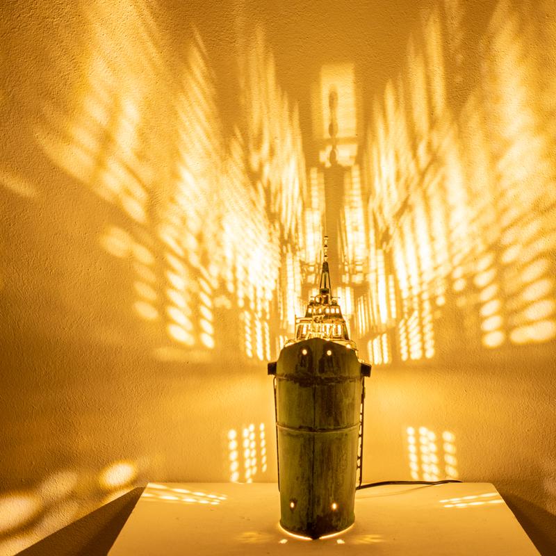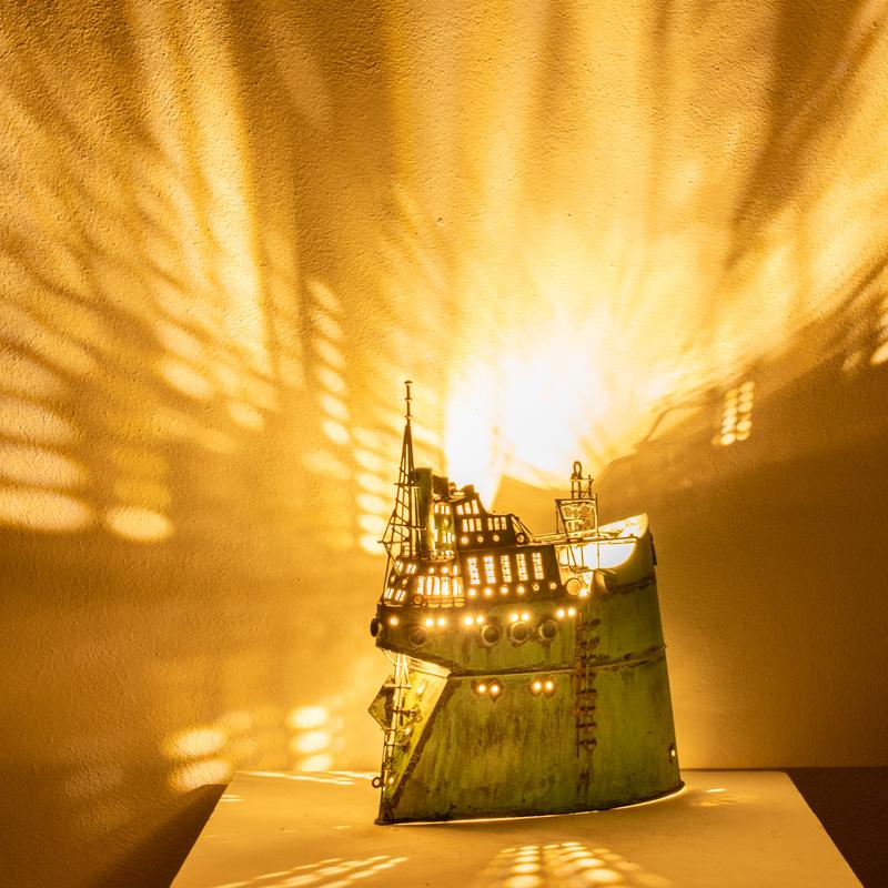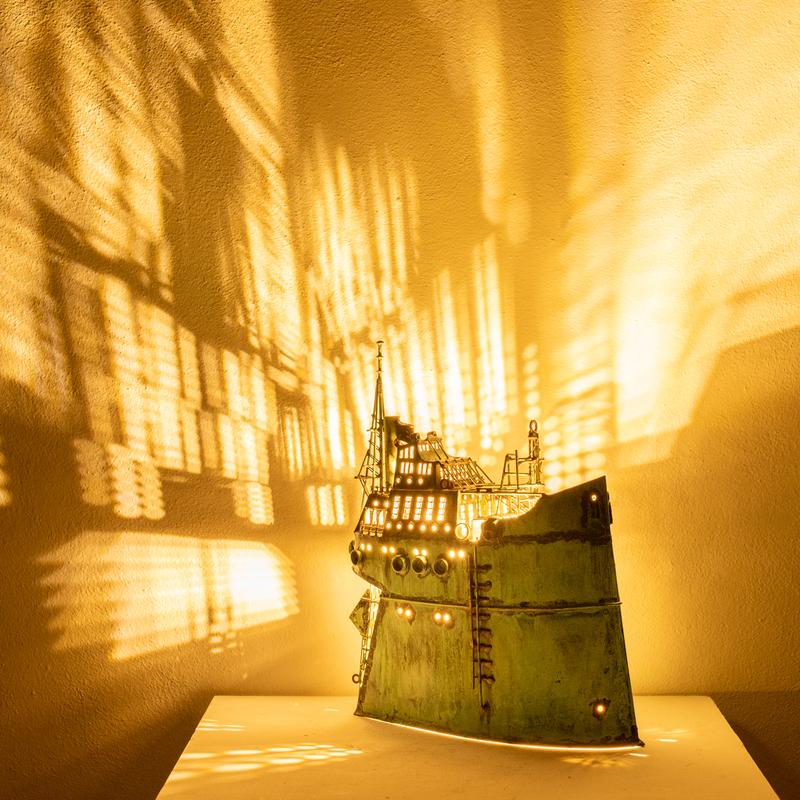 - Technique: Patinated brass and copper