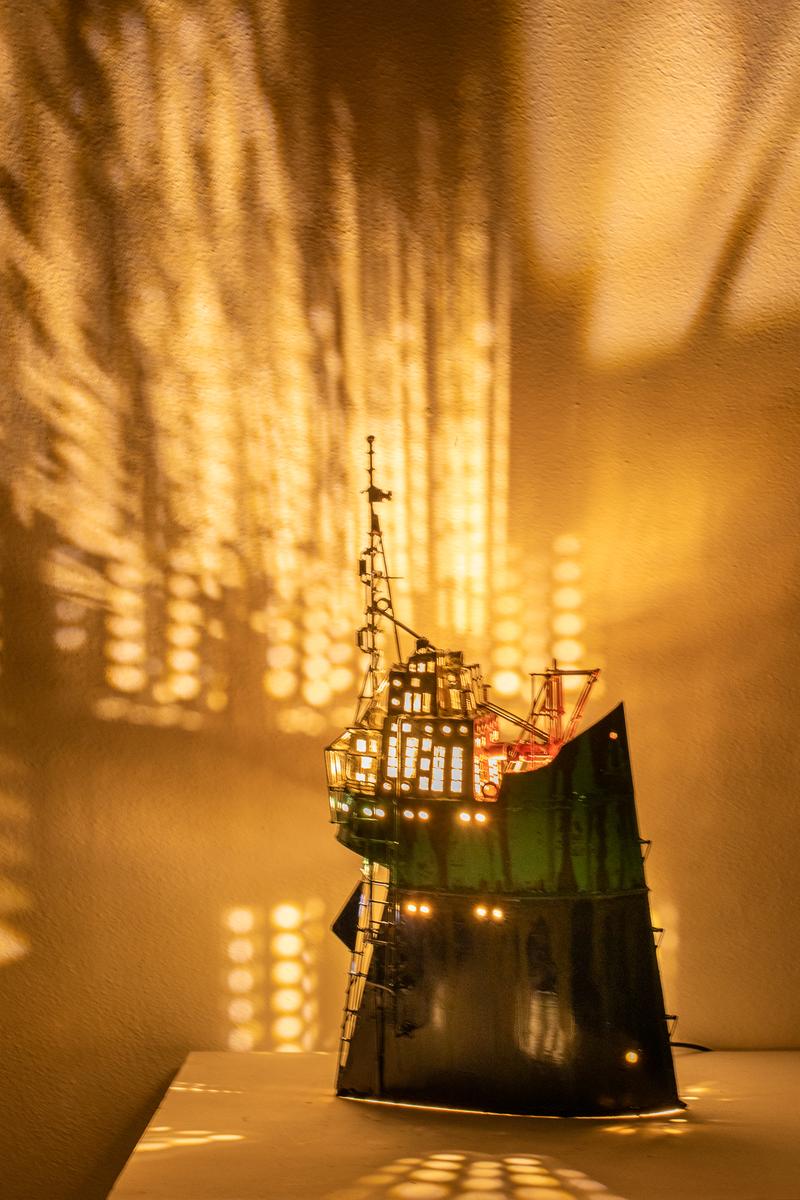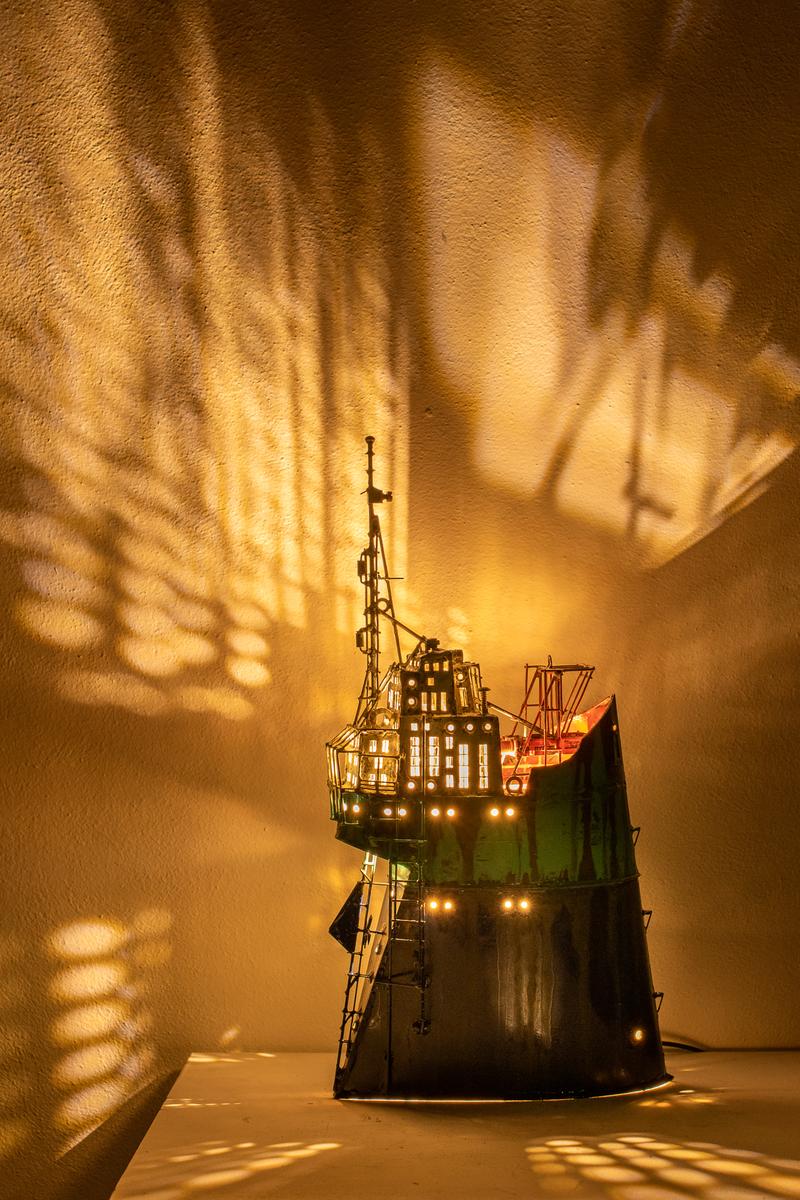 - Technique: Painted brass and copper