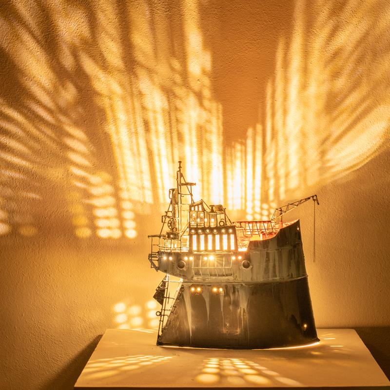 - Technique: Painted brass and copper